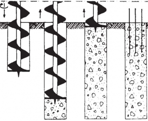 3. Nach Beendigung des Betoniervorgangs, wird der Bohrer aus dem Loch entfernt.